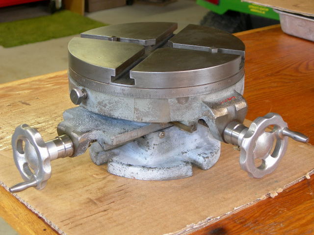Now that I have something to use the Palmgrin rotary table on I decided to retrieve it from the rafters of my shop. This table was purchased for $5 back in about 1970 from a retired engineer that was getting rid of his wood shop, my dad was looking at wood clamps and other miscellaneous items and the fellow said I will through this in for $5, which is all it took for my dad to buy the whole mess. We never had anything good enough to use it on so it has been in a box ever since, I cleaned it up and now it is ready for a project.