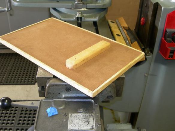 Here are some photos of the new/ old machine cleaned, painted, and tuned up and miscellaneous small items repaired. I decided that it needed a cover for the ways so I used what I had laying around and fashioned it from a tool box liner and some oak, held in place with magnets also a tray to sit on the table for tools. The table lock was missing so I copied one from my neighbors Bridgeport, this is the first free form contouring I have done on my lathe and it turned out pretty good. At the present time I only have to repair the brake, just haven’t had time to work on that as of yet and there are several up-grades that I would like to do, rotary phase converter, etc. but the funds are not available at this time so they will have to wait. My shop lacked for power so I ran another 60 amp service at this time, I never have been able to run a welder, and I have one that has set here for years, that has never been a priority to hook up but it is in service now.