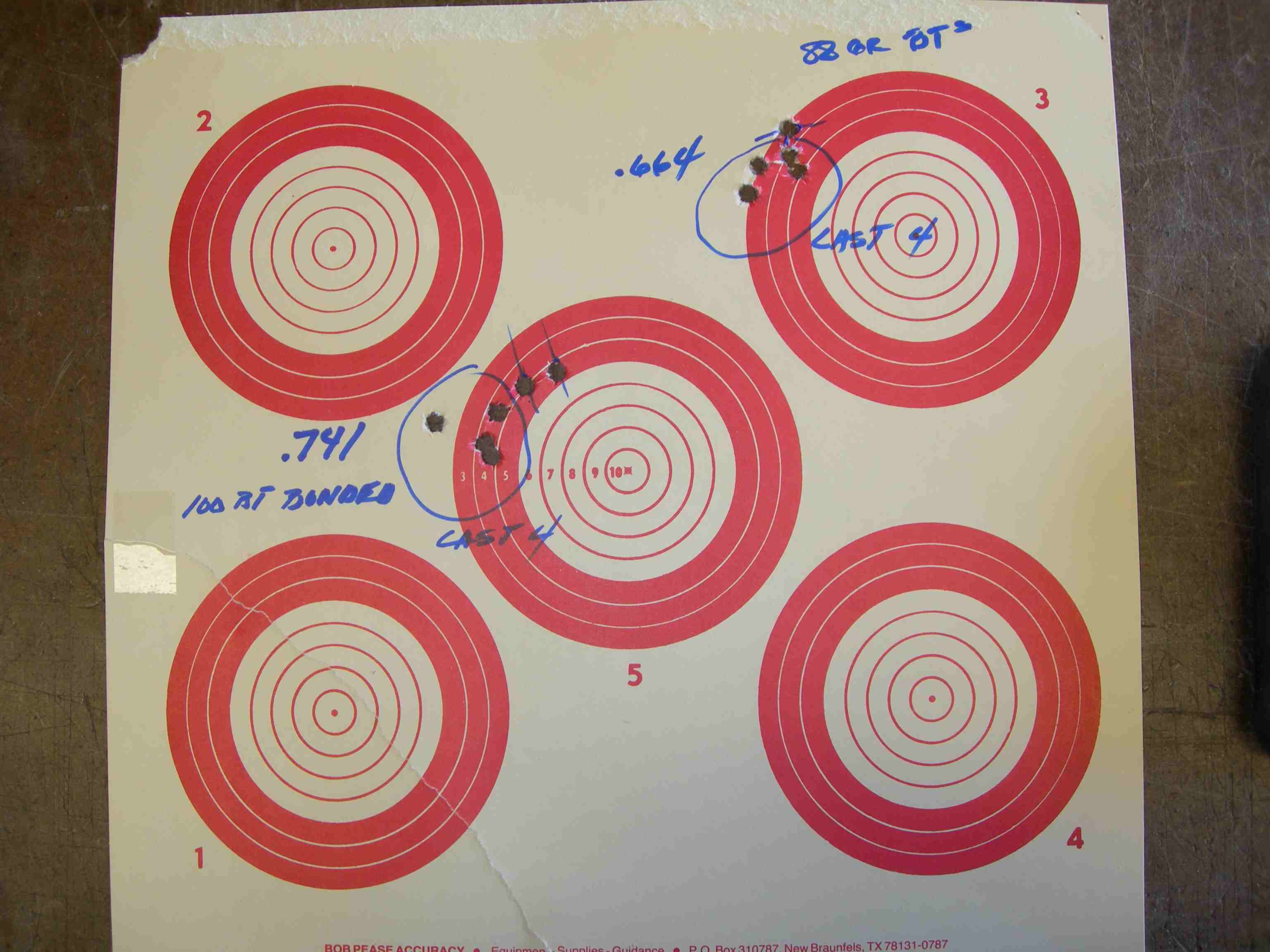 For the first test bullets I started with 12 and ended up with 9 that I could actually send down a barrel, the target shows 6 shots and that is all I had to test for accuracy with. The first 3 were testing charges and shot into the dirt pile in my back yard. (The target that measures .741 for the last 4 shots, the .664 group was some BT’s on a shorter jacket that were not bonded.) Also these bullets are the real first boat tails that I made, I have had this die for probably 3 years and haven’t played with it until now, one of those explore issues. At this time I deemed this project a go for these bullets are no worse than anything else I have put thru this gun which will group in the ¾ to1 ¼ categories depending, so now all the makeshift and cobbled up stuff used will need to be made.