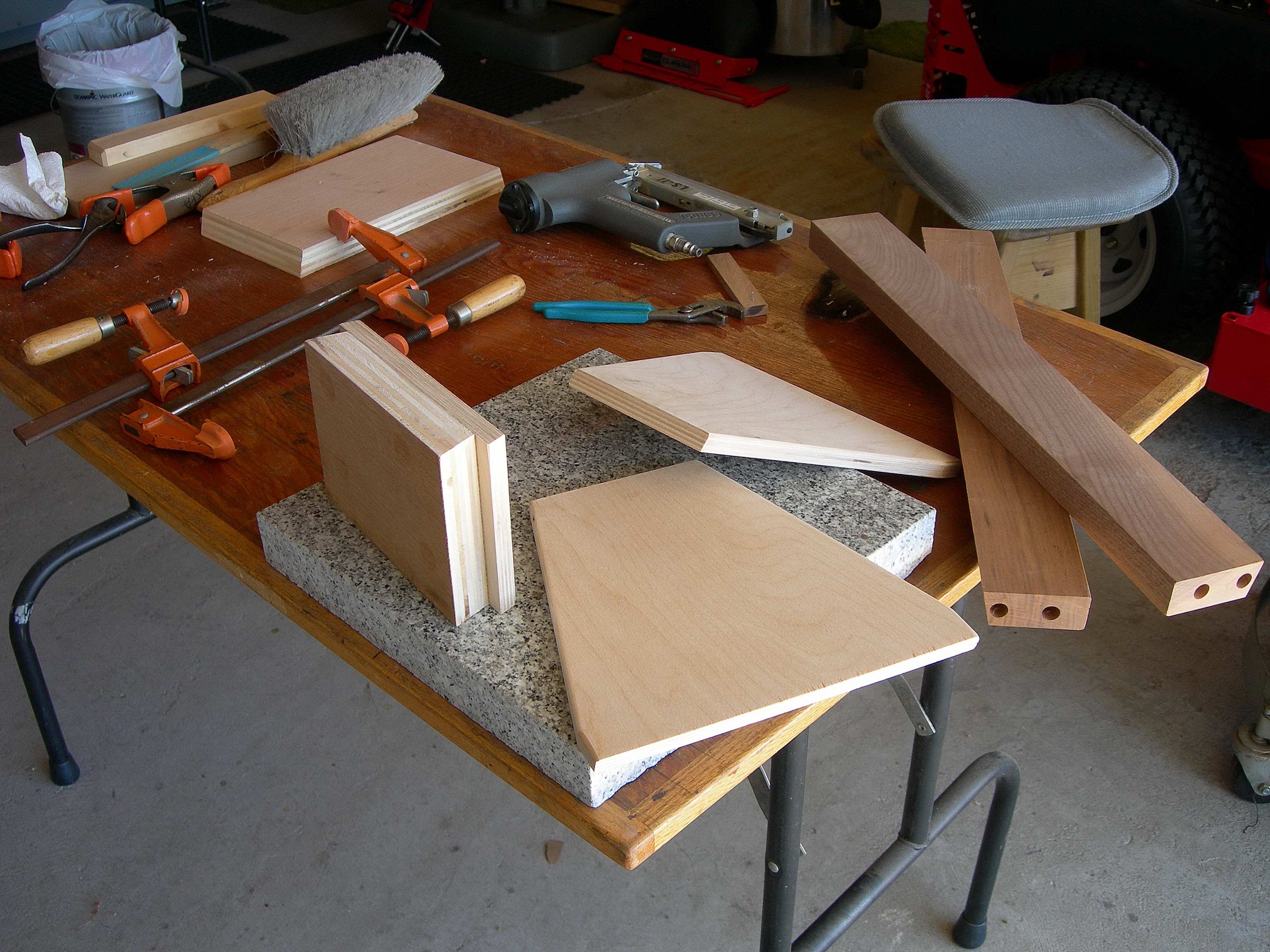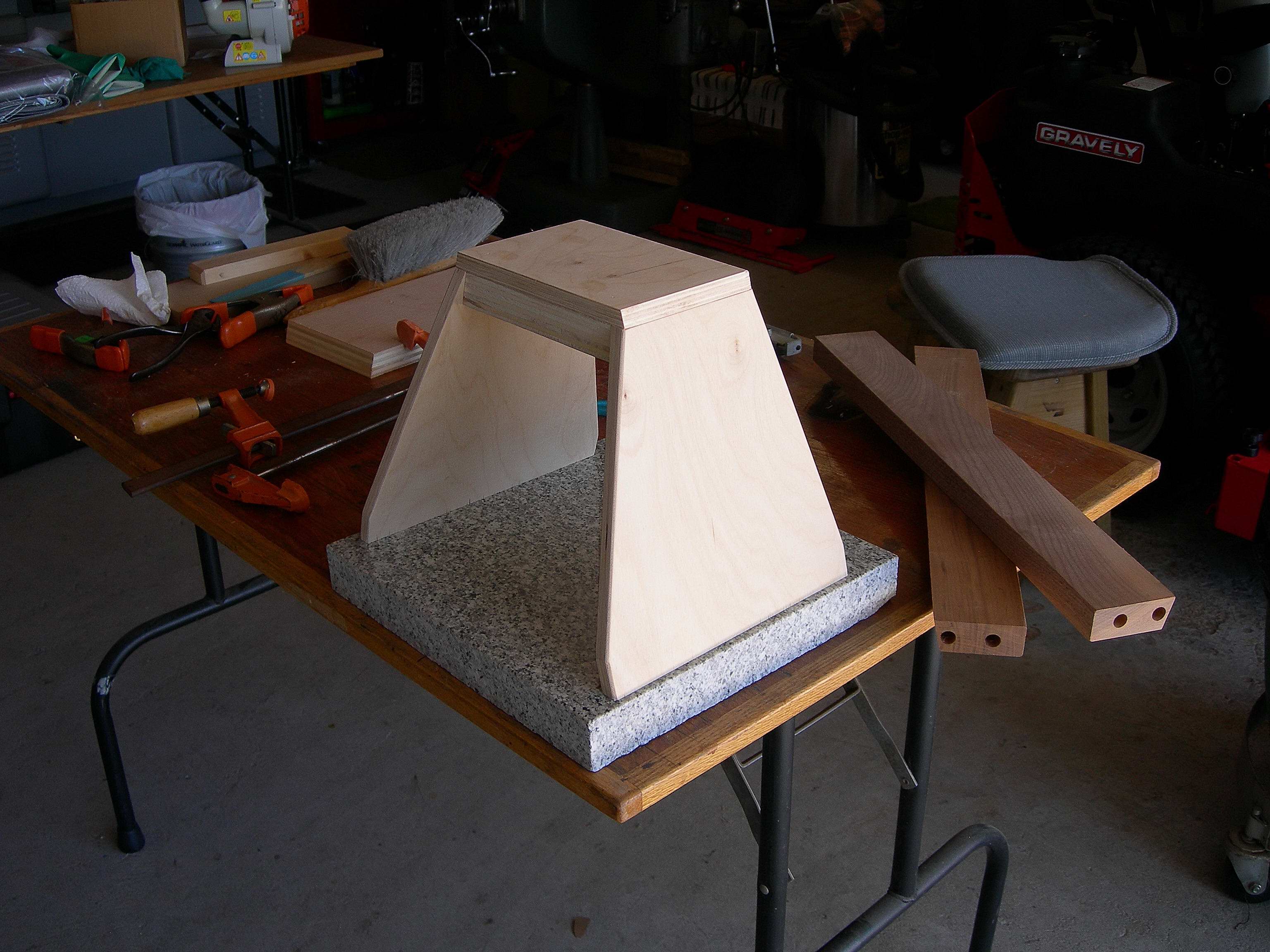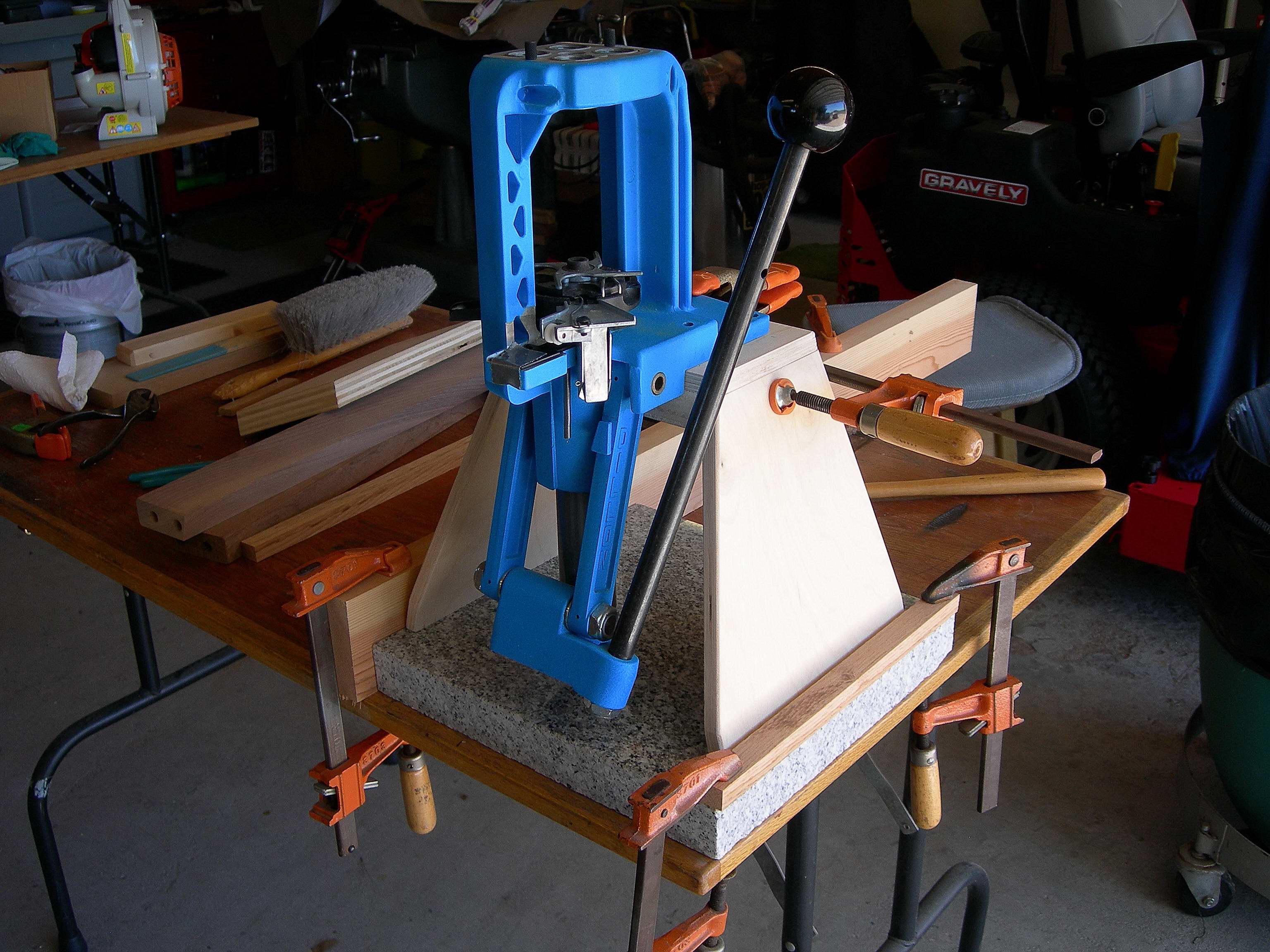 Back in the mid 90’s I got the itch to have a progressive press, at the time the Dillon had the interchangeable tool heads which would fit my needs or should I say wants nicely. The original idea was to set up a tool head for every caliber I owned and at one point this all came true. After a couple of years I found that my ideas were good in theory but not practical for my needs. The press, all the tool heads and powder measures sat on the bench taking up valuable space while my Rockchucker did most of the work. At the time my interests were in rifle calibers and not pistol so when it came to loading rifle I only used it as a single stage press and found it was easier to work with my Rockchucker than the progressive. In or around 2000 I pulled all the stuff off the bench, packed it in boxes and stored it, I have to admit contemplating selling the whole thing several times but figured I would be my loss so I didn’t. Now, 10-12 years later my interest have changed some where I am back shooting pistol and want a chore to load on a single stage press so there was a Dillon resurrection. Time hasn’t changed my space issue either, today the space is even more valuable so rather than mount it permanently as I originally did I looked at the strong mount that Dillon now offers. Here is where I get cheep, seeing that by the time I get the strong mount shipped to the house I would spend around $75, more than I really want to invest at the time so let’s build one. I looked at several options, aluminum, steel, wood or a combination of wood and metal and in the end it was easier and quicker for me to build out of wood. So in the following pictures will go from raw materials to the finished project………