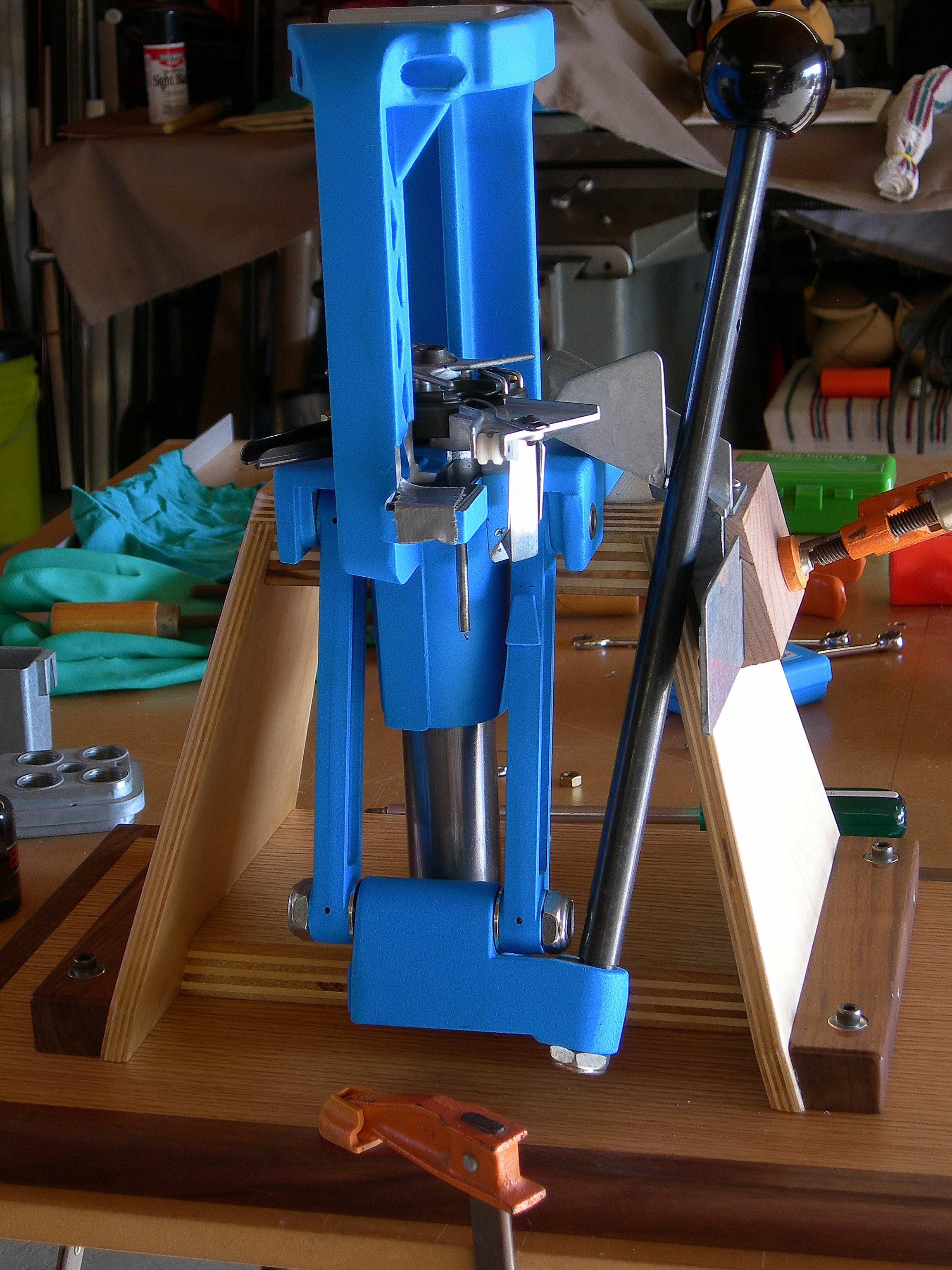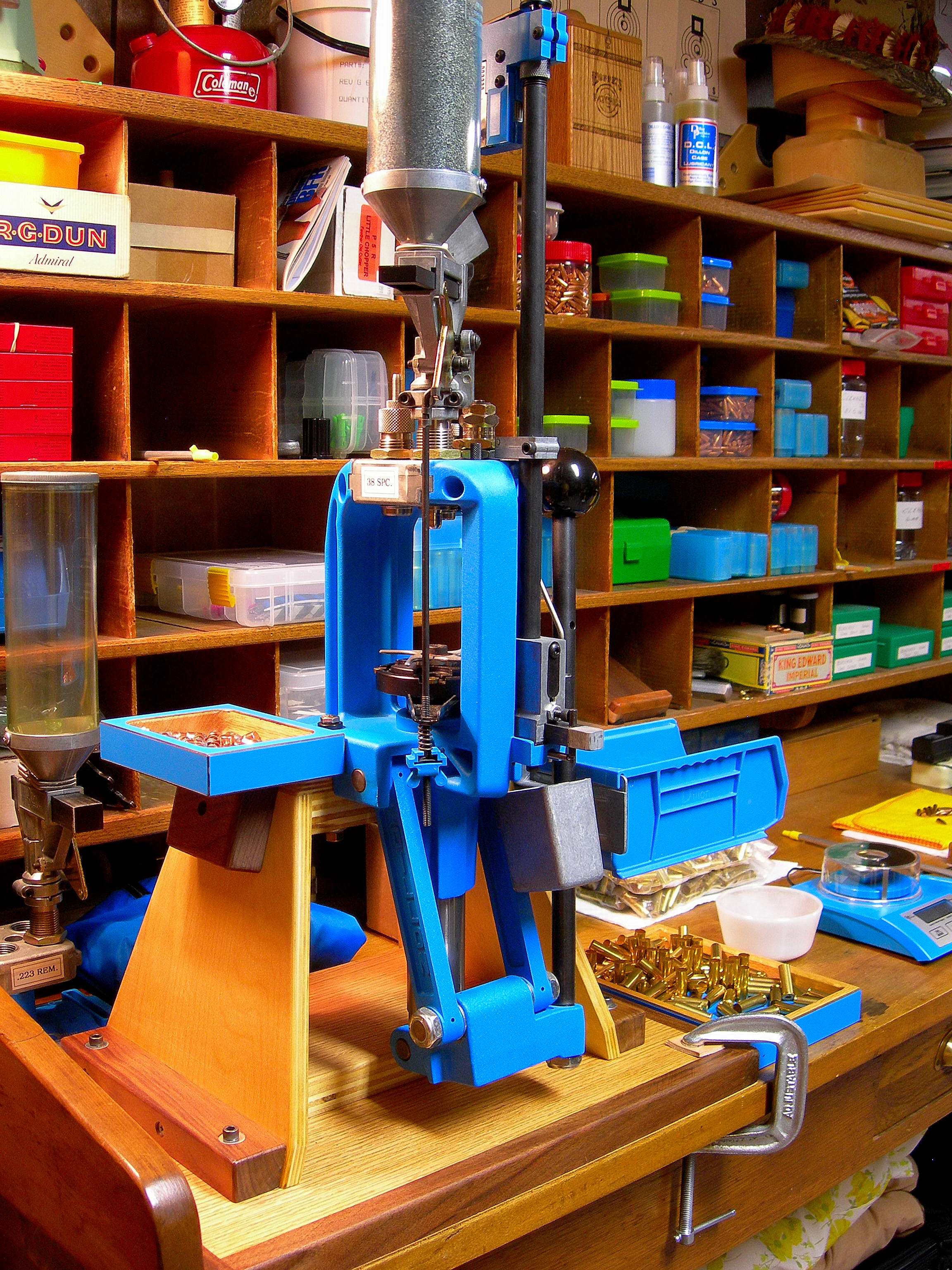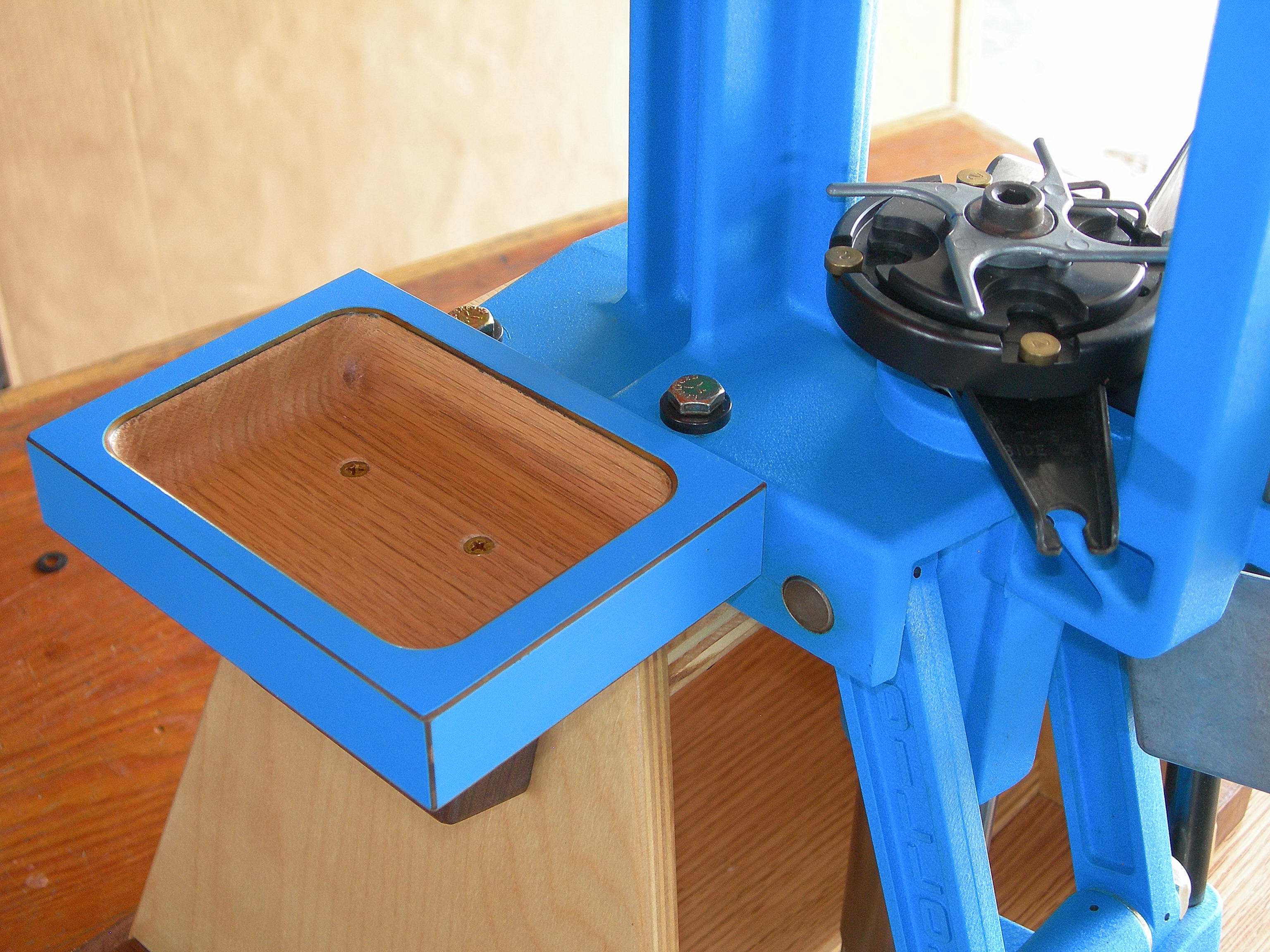 The bullet tray in this picture was made back in the 90’s when I first installed the press on my bench, I remember digging thru sample plates of Laminate to find a match for Dillon blue, and this laminate has come in handy over the years for it matches many other paint schemes.